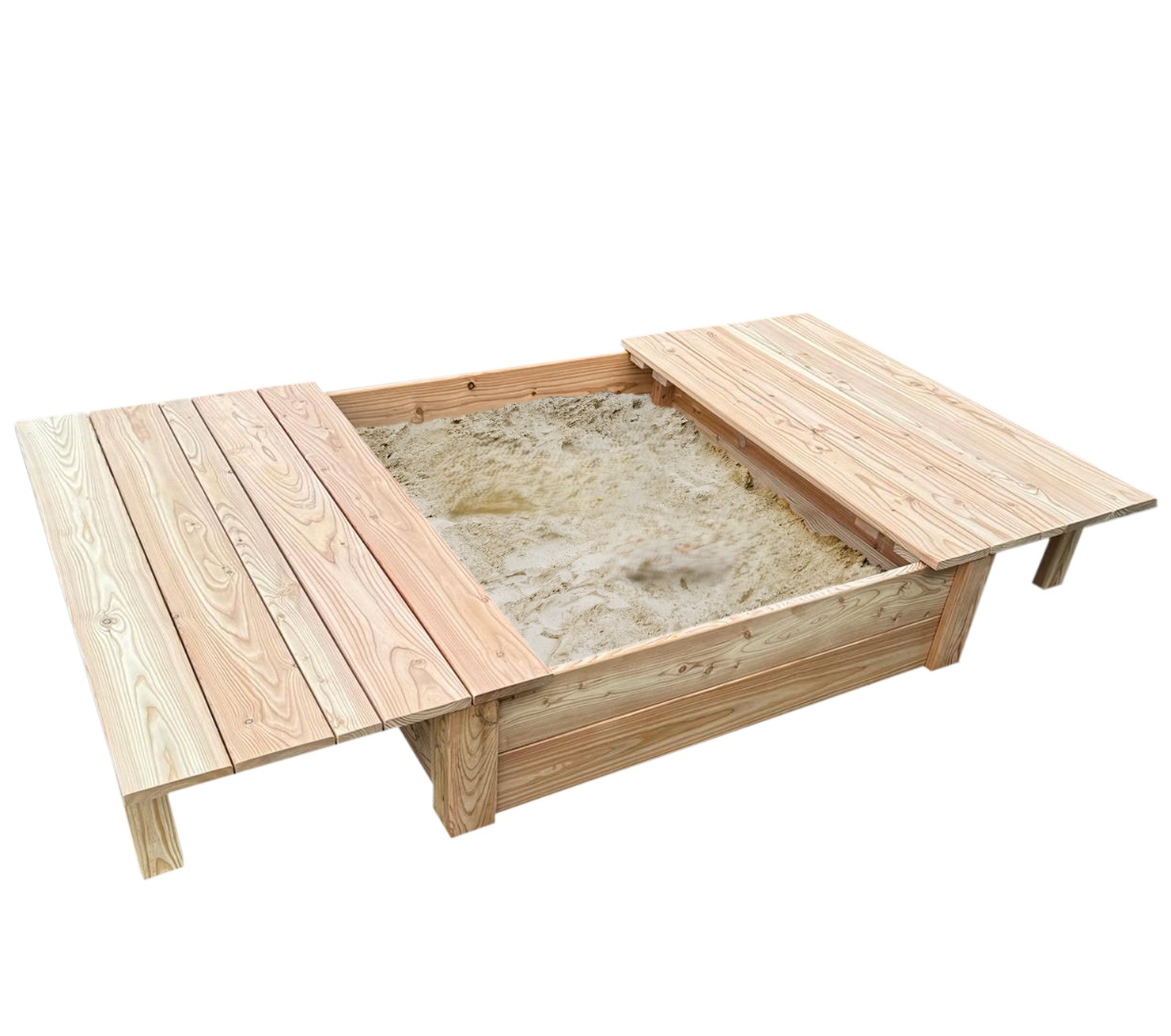 Sandkasten aus Lärchenholz in naturbelassen, nicht imprägniert in 120 x 120 x 31 cm mit Deckel