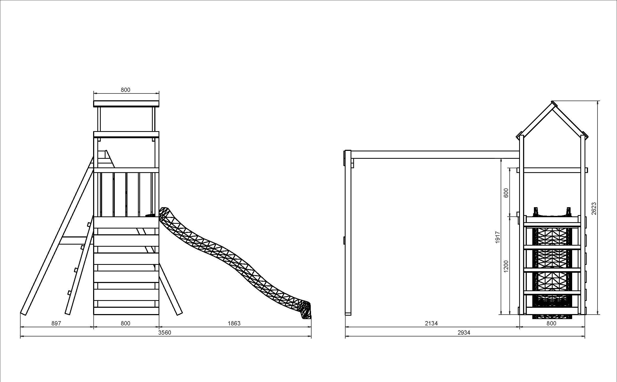 - Pfostenstärke Spielturm: 5 x 5 cm