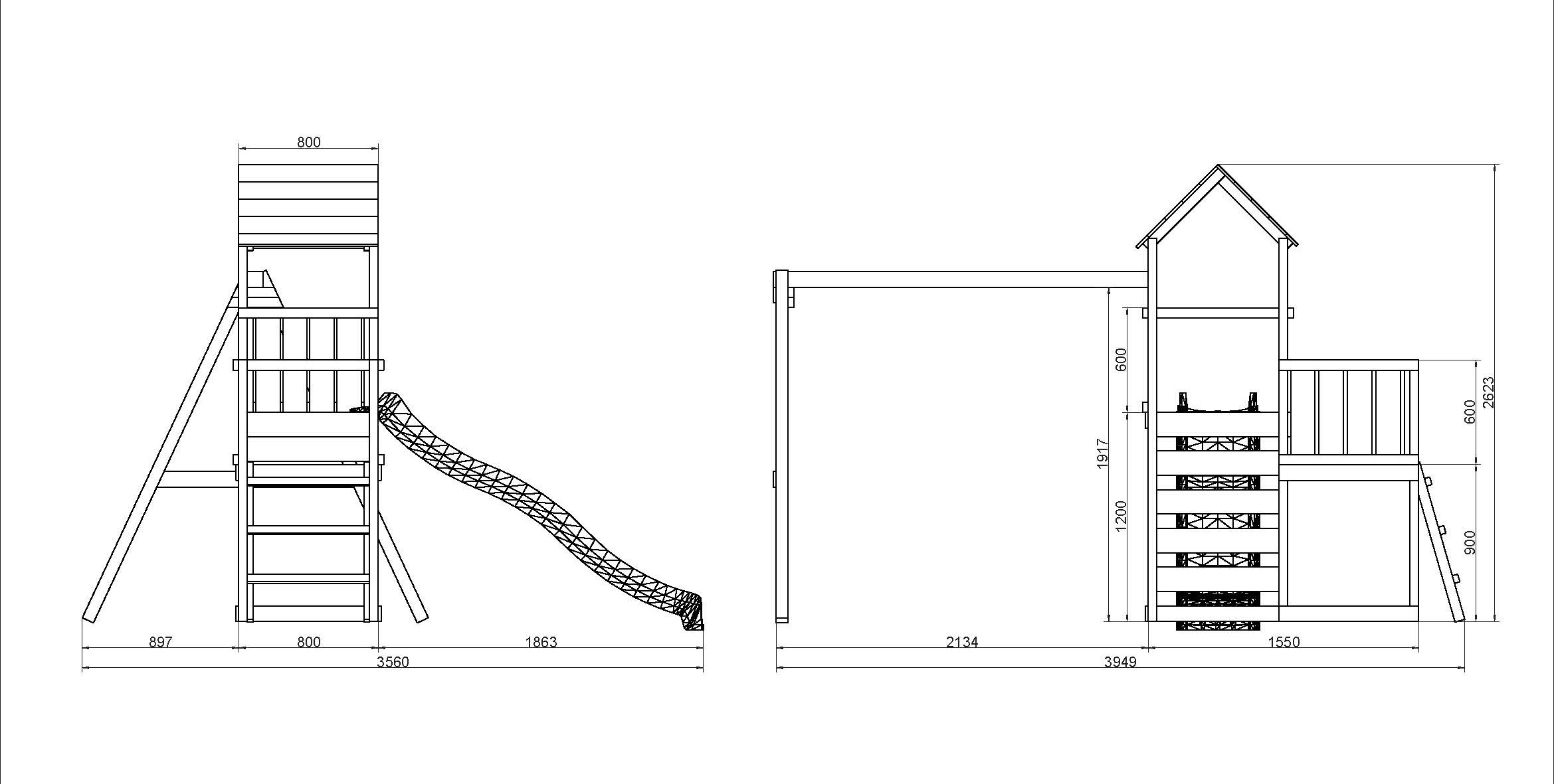 - Pfostenstärke Spielturm und Anbau: 5 x 5 cm